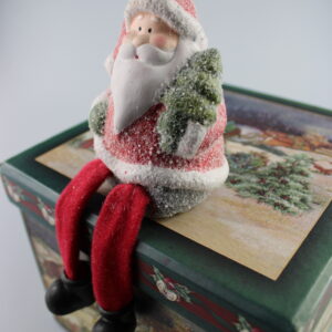 Ülő mikulás karácsonyi díszdobozzal