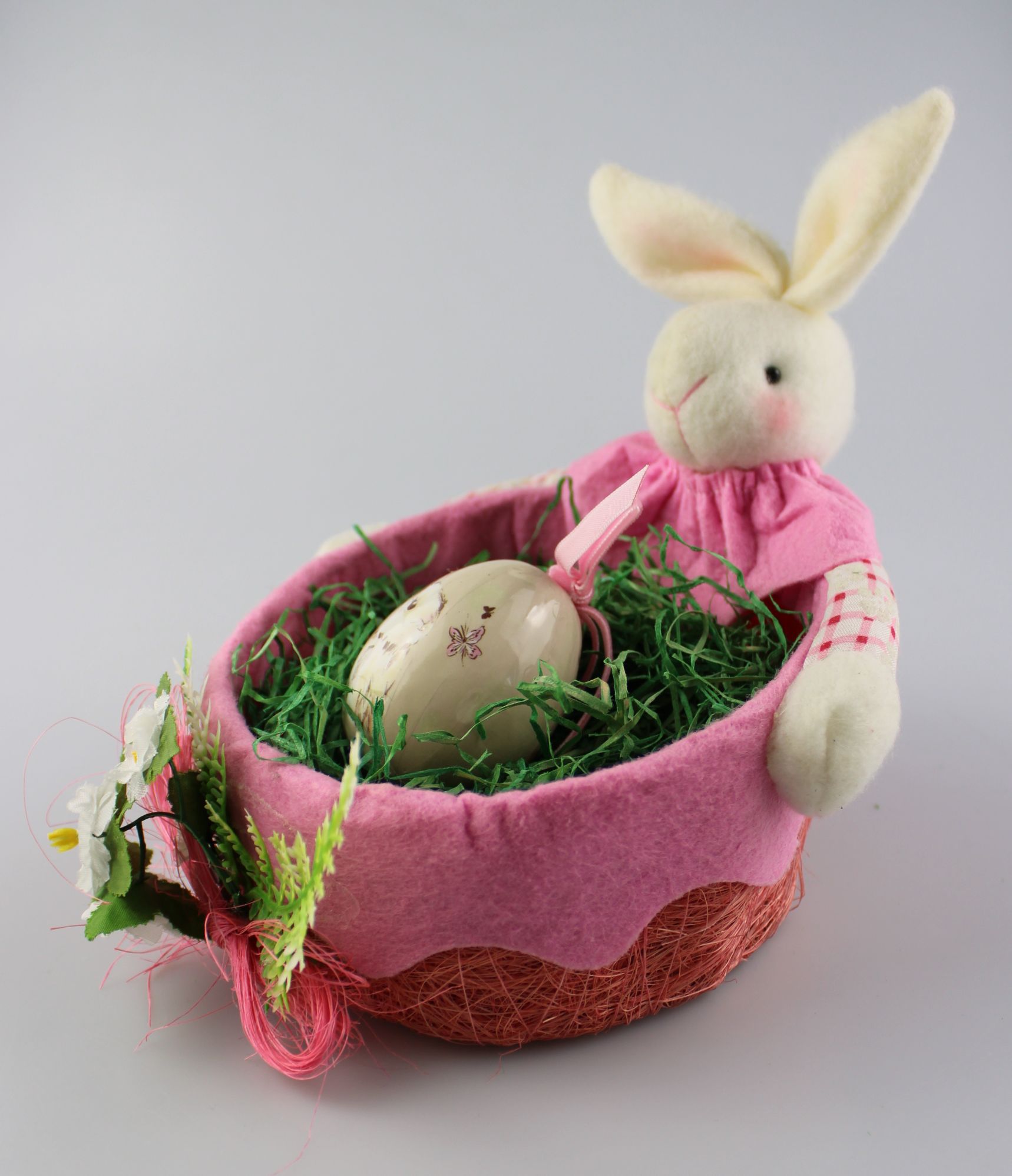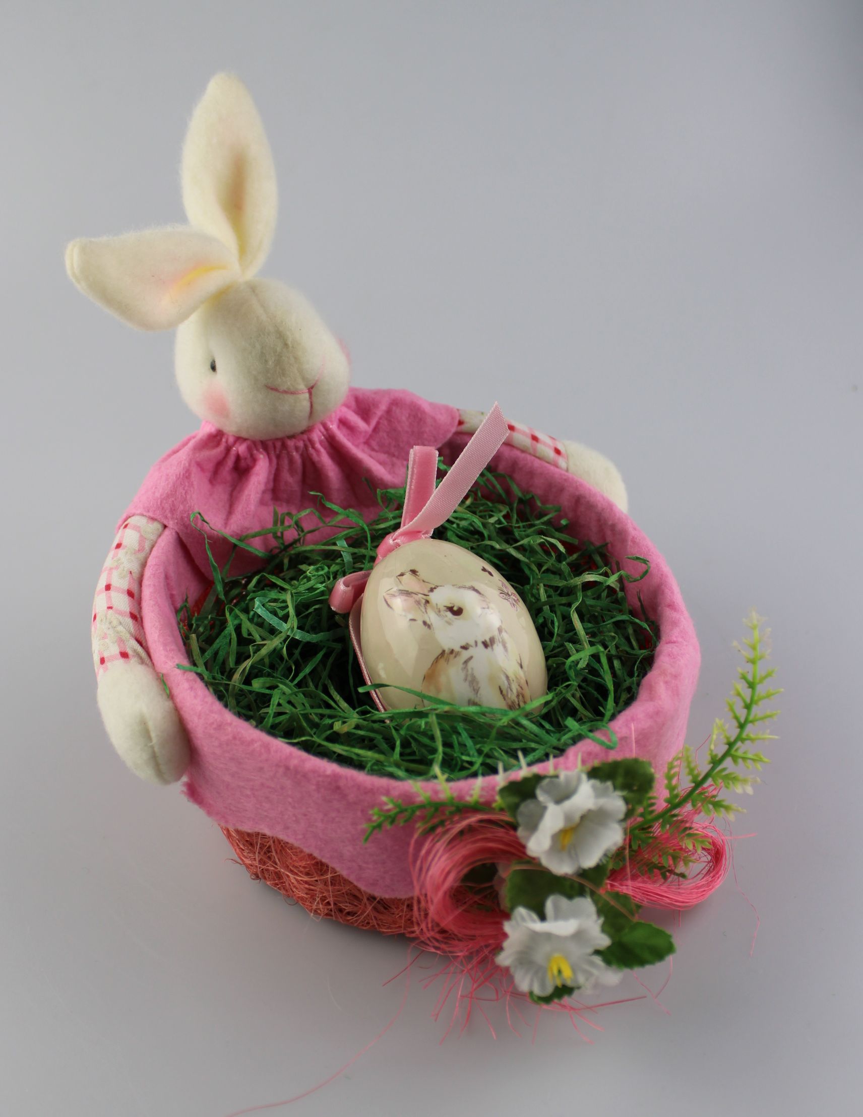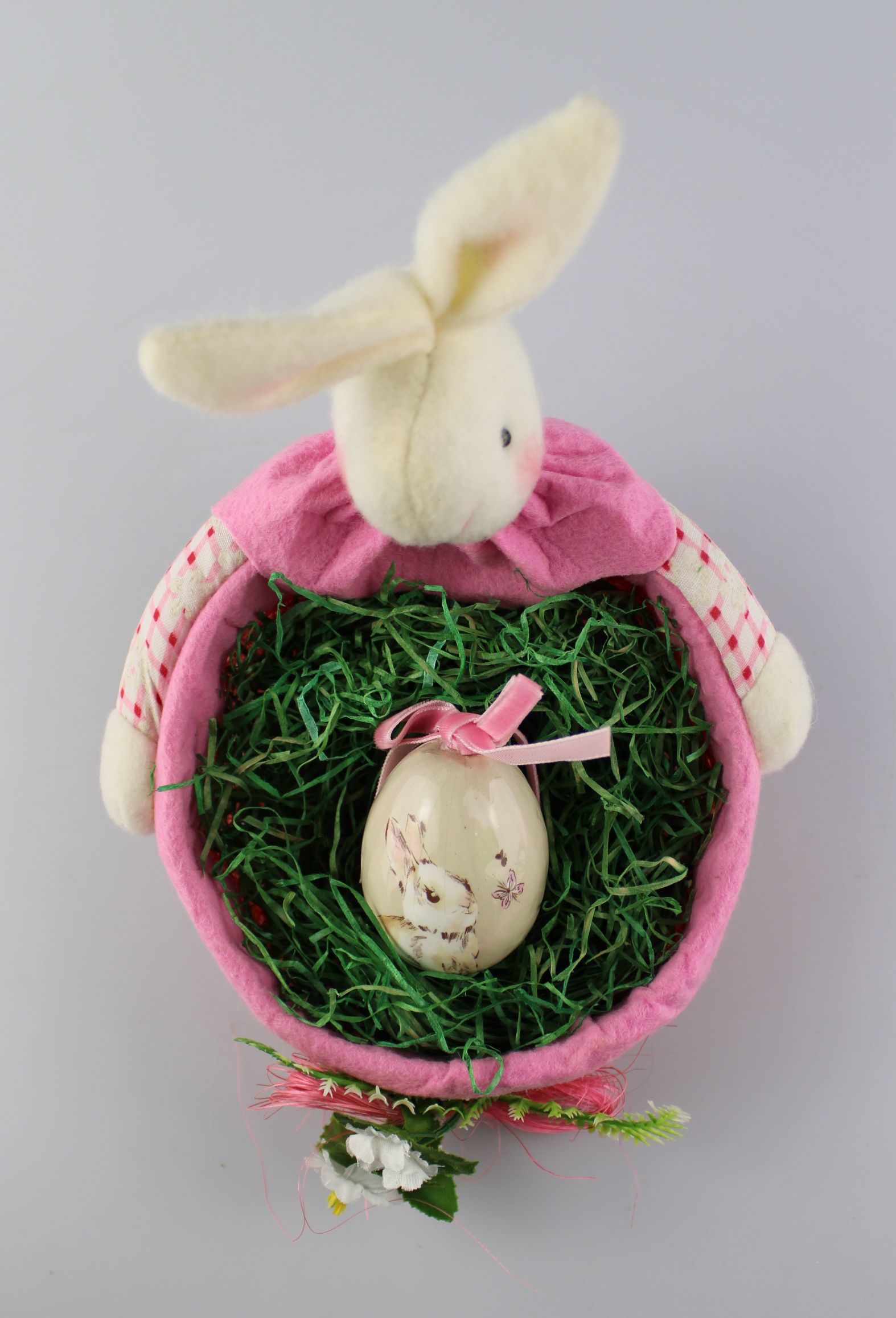Húsvéti nyuszikosárban rejtőzik a nyuszis tojás.