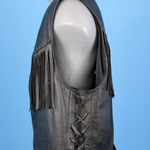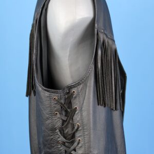 Négygombos fekete bőrmellény apró