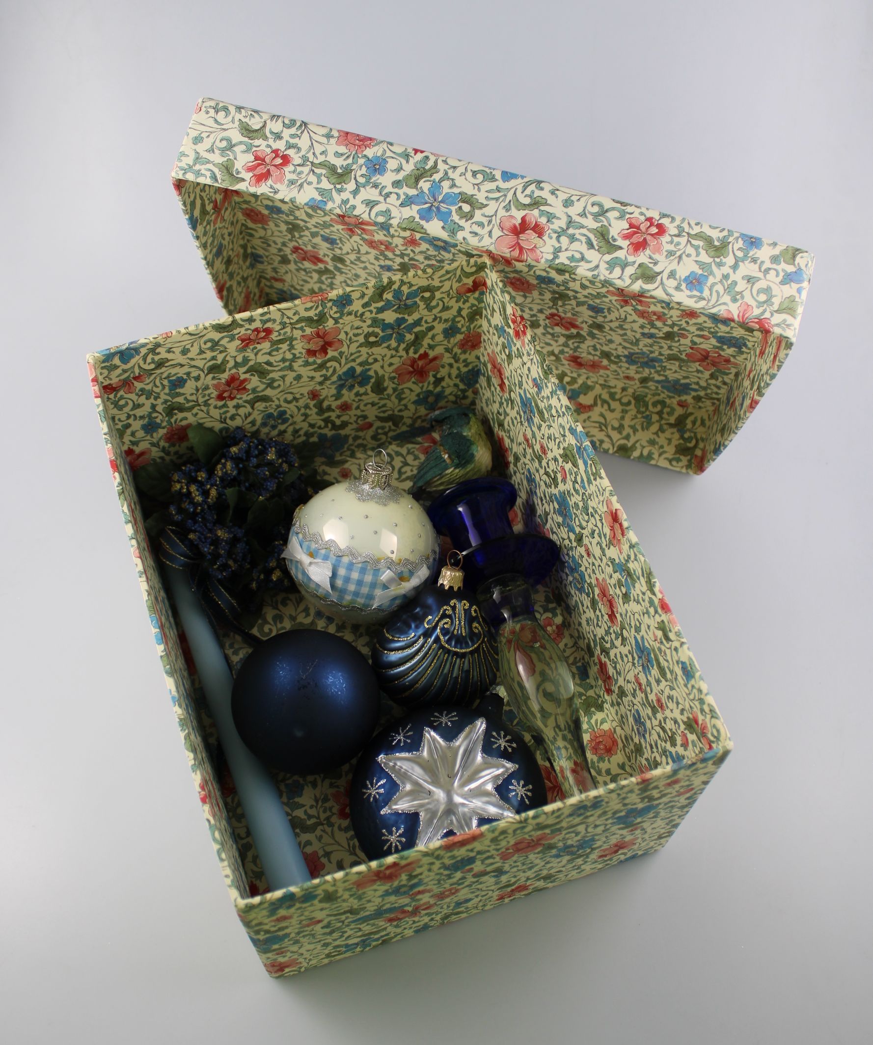gyertyatartóval, gyertyával díszdobozban.